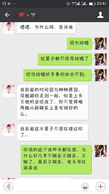 他是个没结婚的男人我们之前谈过,现在我结婚有宝宝,知道我婚姻不幸福他这么对我说,我该信吗 点击展开 匿名用户 2016-03-22 23:44 推荐回答 首先很现实的告诉你,你有小孩子和他在一起他家人朗然垃会全力反对你们在一起的,我身边太多这种例子竖筛了殊凡,现在他们都在奋斗为了能够在一起。所以你懂了麽 匿名用户 2016-03-22 23:47 宝宝知道提示您:回答为网友贡献,仅供参考。 为您推荐: 其他回答 去追寻你的爱,别被婚烟束缚 匿名用户 2016-03-22 23:47 不能信 匿名用户 2016-03-22 23:46 不行吧 匿名用户 2016-03-22 23:45 相关问题 我怀孕了 可是男朋友不想结婚 说是就算我逼他结婚这段婚姻也不会幸福 可是我不想打掉孩子 我该怎么办 我和一个女孩表白了,,结果她打电话对我说,她不信我爱她,说我就是骗她,还说男人都一个样,怎么办,还 表白过的女孩子目前还在追对我说:我在为你的婚姻幸福着想,是什么意