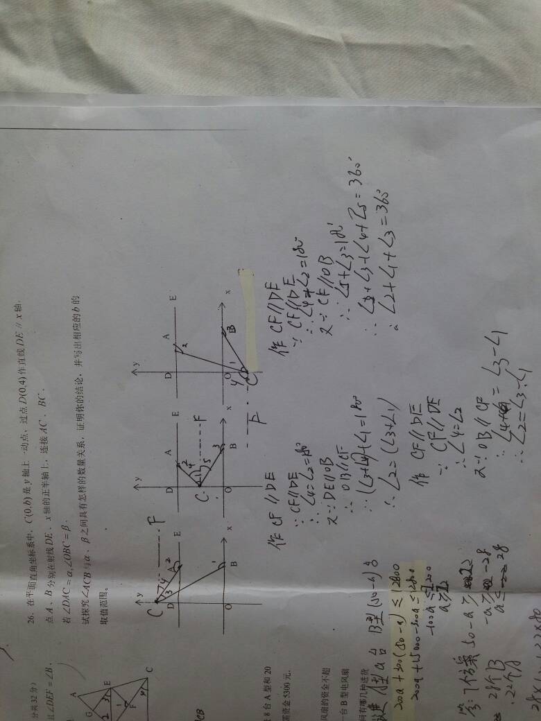 初一数学,志26,我孩子的自学题,我没有参考答案,请学霸和老师帮忙看看,指点一下,谢谢大家 点击展开 匿名用户 2015-06-23 15:39 推荐回答 题中三个图刚好对应三种情香化况,答案如上图,第一个图内错角相等用两次,第二个图也是内错角相等,第三匪了个图三角形两内角和等于第三个狗脚涌角的外角,然后同位角相等。 匿名用户 2015-06-23 17:15 宝宝知道提示您:回答为网友贡献,仅供参考。 为您推荐: 其他回答 看不清没办法 匿名用户 2015-06-23 15:40 相关问题 第5题,我孩子的自学卷,孩子改了一次还是和参考答案不一样 请学霸,老师帮忙看看孩子错的原因,和详细 我没有绘画的天赋,但很想学画漫画 但不想去培训中心,想自学,请问哪位能告诉我怎么学… 我没有绘画的天赋,但很想学画漫画 但不想去培训中心,想自学,请问哪位能告诉我怎么学…