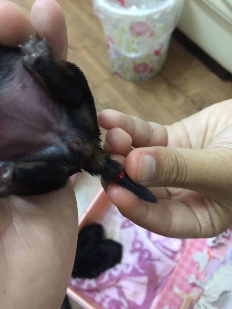 关于约克夏狗宝宝断尾问题今天给约克夏宝宝断尾了,是用牛皮筋绑住的,可是听别的网友说绑的太短了,于是我又重新绑,但是中间已经过去两小时,这个怎么办,要紧吗?请懂得朋友赶紧回复我下,在线等,照片里前面凹进去的是先前绑的