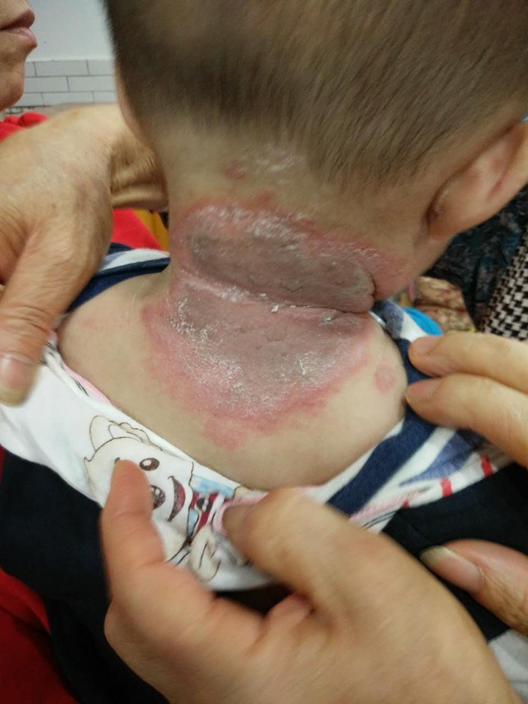 宝8个月睡一晚起来后颈红一大片怎么回事,看医生说是什么过敏!拿了药擦了没效果!今天耳朵后又长了!大