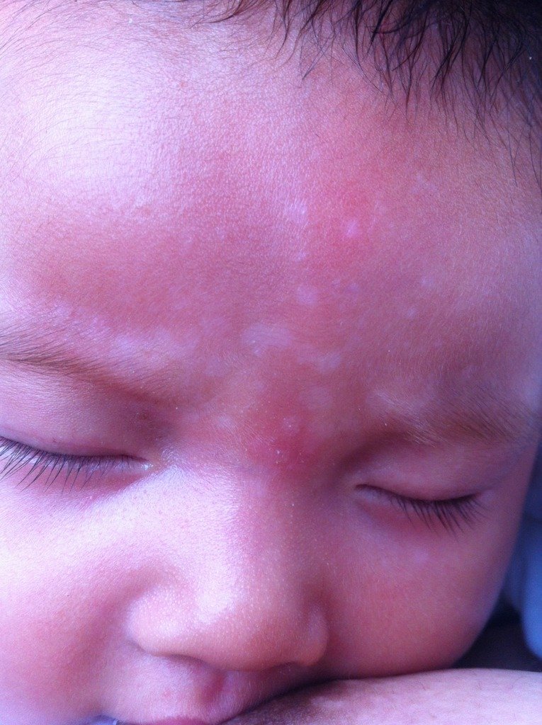 请问俺家宝贝额头白色的是什么?俺家奶奶说是白癜风 我听了快吓哭了,我好担心