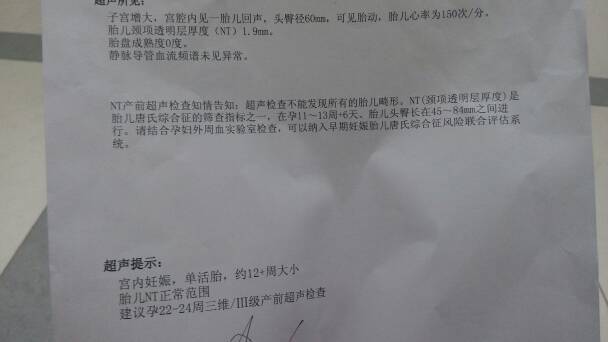 今天去nt 了,感觉那个胎儿颈项透明层厚度有点厚了,看见别人13周都只是1·6mm,希望别再增了
