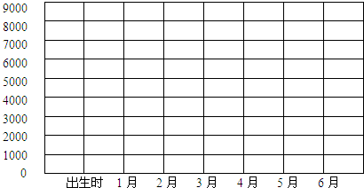 下表是一名婴儿出生时以及一个月、二个月…六个月的体重记录,时 间 出生时 一个月 二个月
