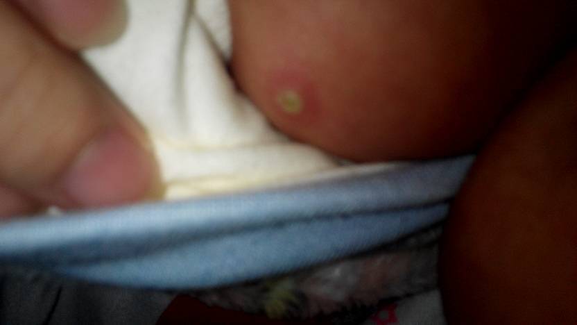 正常的,我家也这样,我吧他挤破了,差了点檫肚子的消毒水