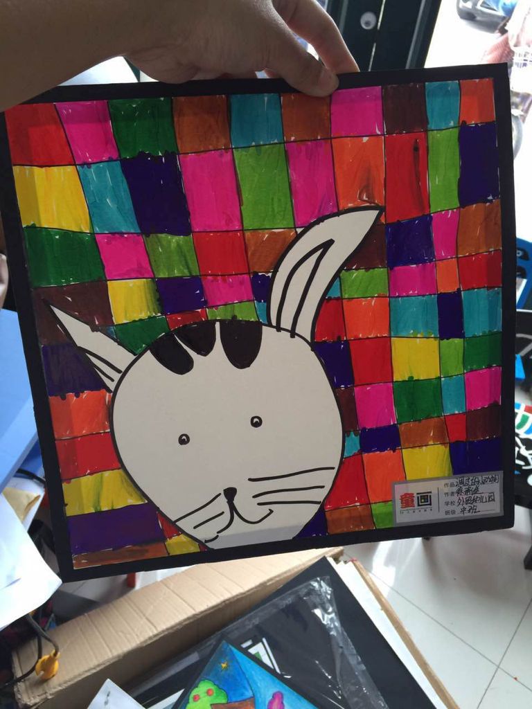 调皮的小猫藏在彩虹的格子里画图作图感言女儿的幼儿园画画作品,让上台发表作图感言,大家帮忙想一想