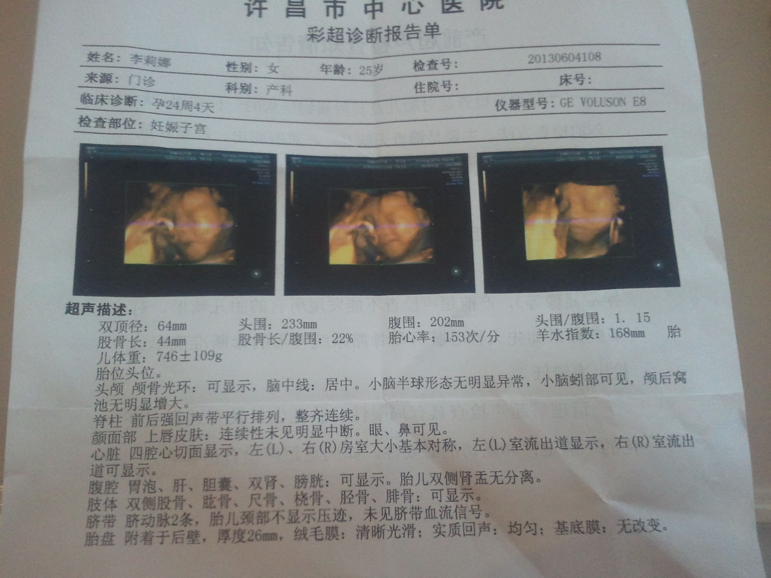 麻烦懂的人帮忙看下这张四维彩超单子 谢谢