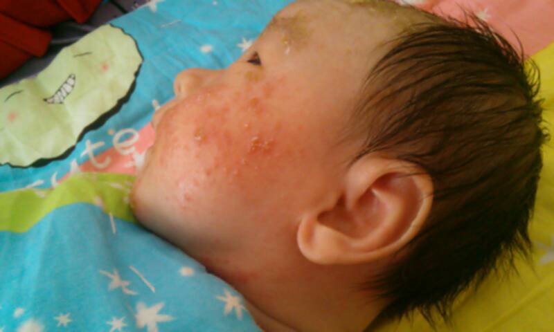 我家宝宝得湿疹了,怎么才算要好啊,脸颊由红斑变成了点点,现在点点上长黄枷了,着急啊