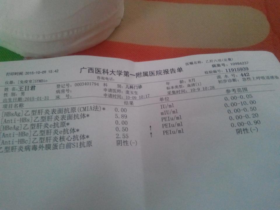 帮我看看宝宝的乙肝两对半 帮我看看宝宝的乙肝两对半 点击展开 月伢弯笑:) 2015-10-09 18:06 为您推荐: 其他回答 不太清楚哦 永远告别流离 2015-10-09 20:22 问医生。。 健康最幸福 2015-10-09 18:54 问问医生说 虚伪_9JsD 2015-10-09 18:25 不太清楚。 离别的泪水 2015-10-09 18:15 有就是了! 雪球麻麻 2015-10-09 18:08 加载更多 相关问题 现在做乙肝两对半可以不… 唐氏筛查和乙肝两对半检查都需要做吗 可以同一时间做 还是要分开第几个月做好呢 求祝福 我是乙肝携带妈妈,宝贝就快3岁了今天带他去验了两对半,希望他一定健健康康,祝宝贝们都健康快乐