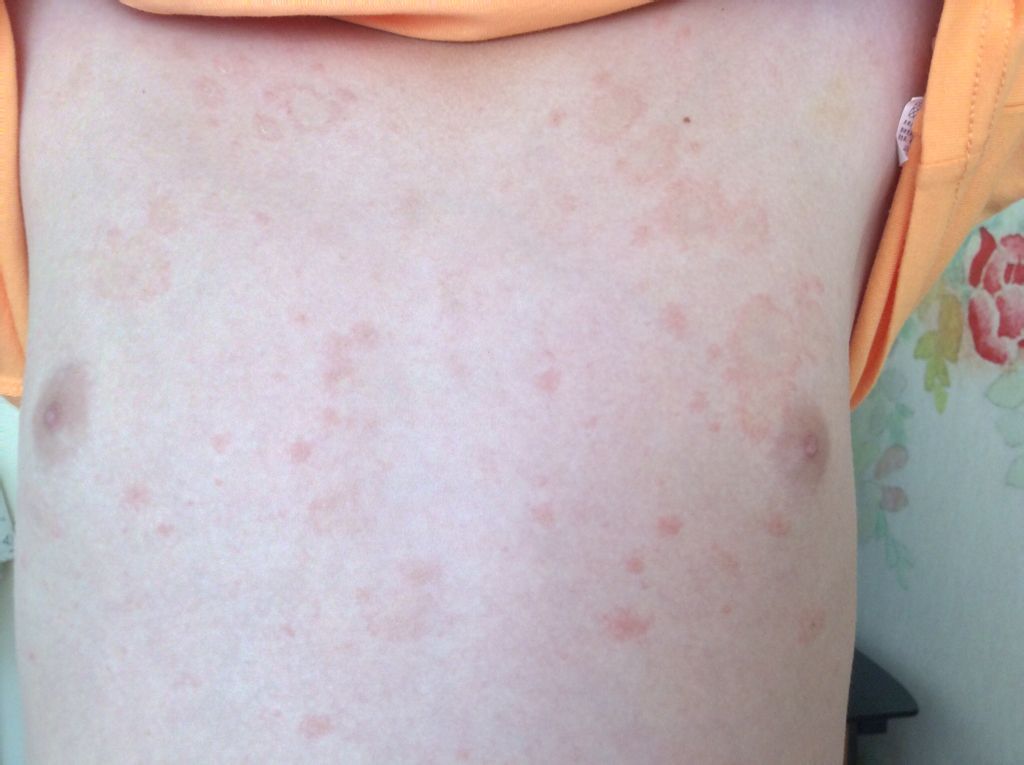 13岁孩子上半身皮肤起了红疹 请问是什么 点击展开 母婴用户265082384 2015-06-18 12:41 满意回答 您好这种情况考虑是湿疹,湿疹尚无特效疗法,多采用对症治疗。以内服抗菠碗组胺药物治疗为多,如苯海拉明、非那根、扑尔敏、敲宰赛庚啶等,既可单用或联用,还可与镇静药告恨肆、维生素C等合用。 cn#BBLkVGfBBf 2015-06-18 12:42 宝宝知道提示您:回答为网友贡献,仅供参考。 相关问题 宝宝皮肤起这样的红疹是怎么回事儿? 宝宝皮肤干燥起红疹怎么办 宝宝皮肤干燥起红疹怎么办