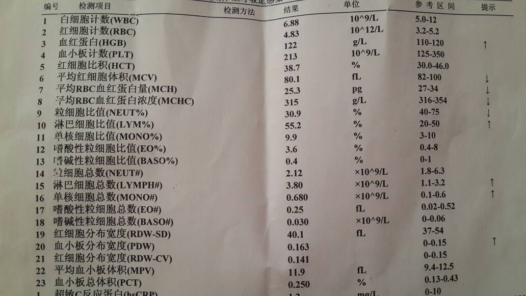 宝宝发烧,去医院检查,医生叫验血,验血单我看不懂,请问这个最后提示标志,是不是代表不好?