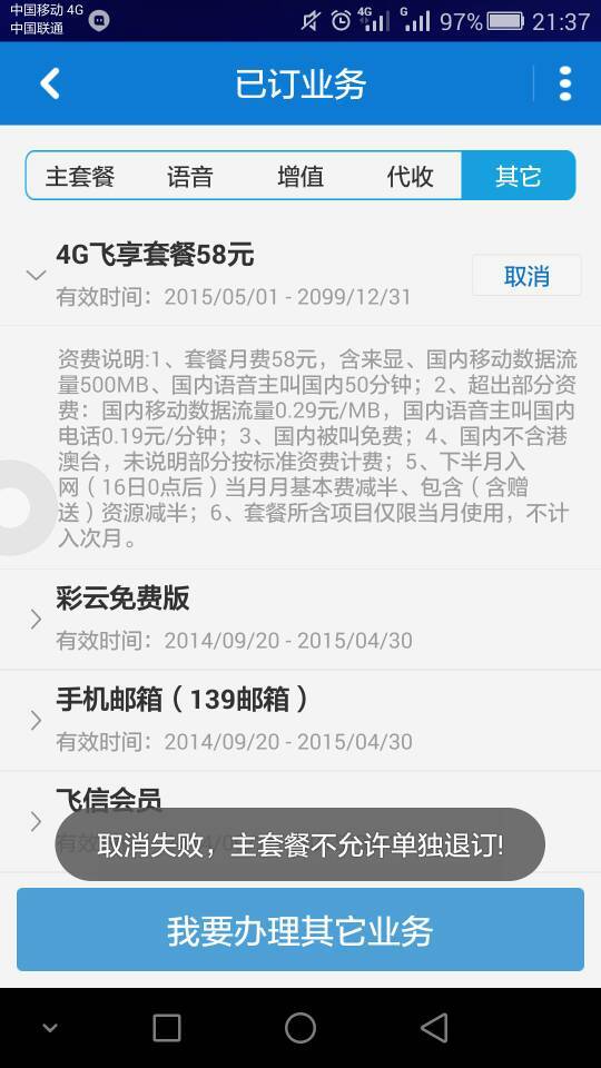 移动公司没缘绣乱扣你编欺话费已经算客气了,自己失误办理的套餐你想取消就没那么简单了。移动公司嘛,就是这样赚黑潜遮航心钱的!