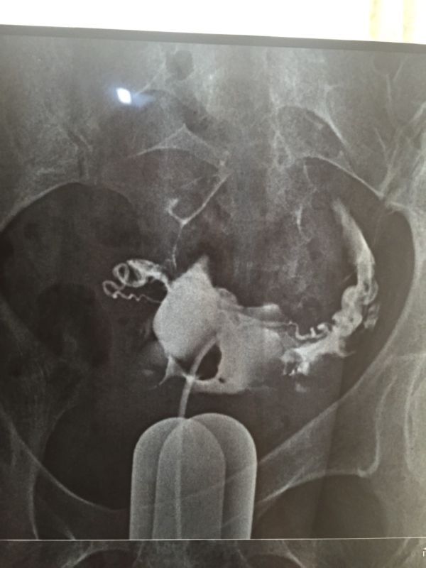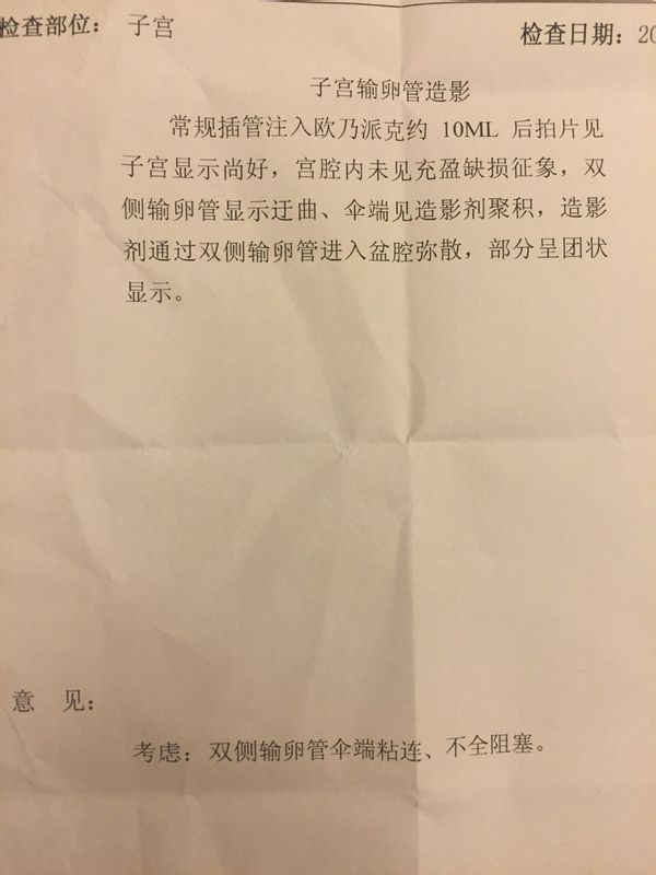 原发性不孕,碘海醇造影,双侧输卵管显示迂曲,伞端见造影剂聚积,造影剂通过双侧输卵管进入盆腔弥散,部 分呈团状显示,考虑:双侧输卵管伞端粘连,不全阻塞,请问要做手术吗?手术成功率高吗?怀孕几率高吗?急盼答复 点击展开 匿名用户 2015-03-29 18:16 为您推荐: 其他回答 你好,如果双侧输卵管不是完全堵塞的话,做手术后怀孕的几率非常大。建议你选择手术治疗,如果害怕手术失败可以选择做试管婴儿。 天使7737 2015-03-29 22:28 相关问题 右侧输卵管部分峡部显影 左侧输卵管走行迂曲,造影剂流速正常,数秒钟后可见中量造影剂弥散入盆腔,涂布 右侧输卵管部分峡部显影 左侧输卵管走行迂曲,造影剂流速正常,数秒钟后可见中量造影剂弥散入盆腔,涂布 右侧输卵管部分峡部显影 左侧输卵管走行迂曲,造影剂流速正常,数秒后可见中量造影剂弥散入盆腔,涂布欠