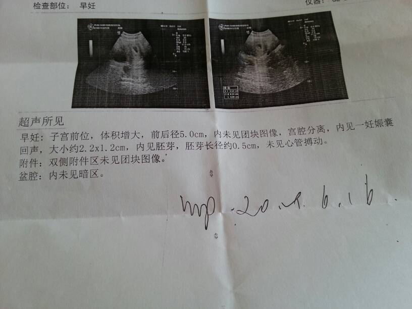 急急急,各位帮我看看 末次月经是6月16日,今天去打BC,有胎芽却没有原始心管搏动,请问宝宝还留得