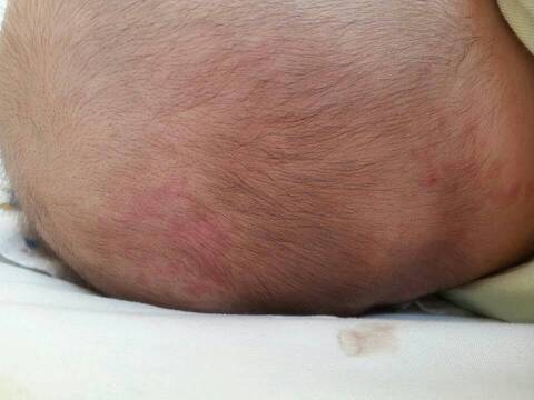宝宝从出生到现在快五个月了!头后面有两处一直都有血点点!不知道怎么回事?