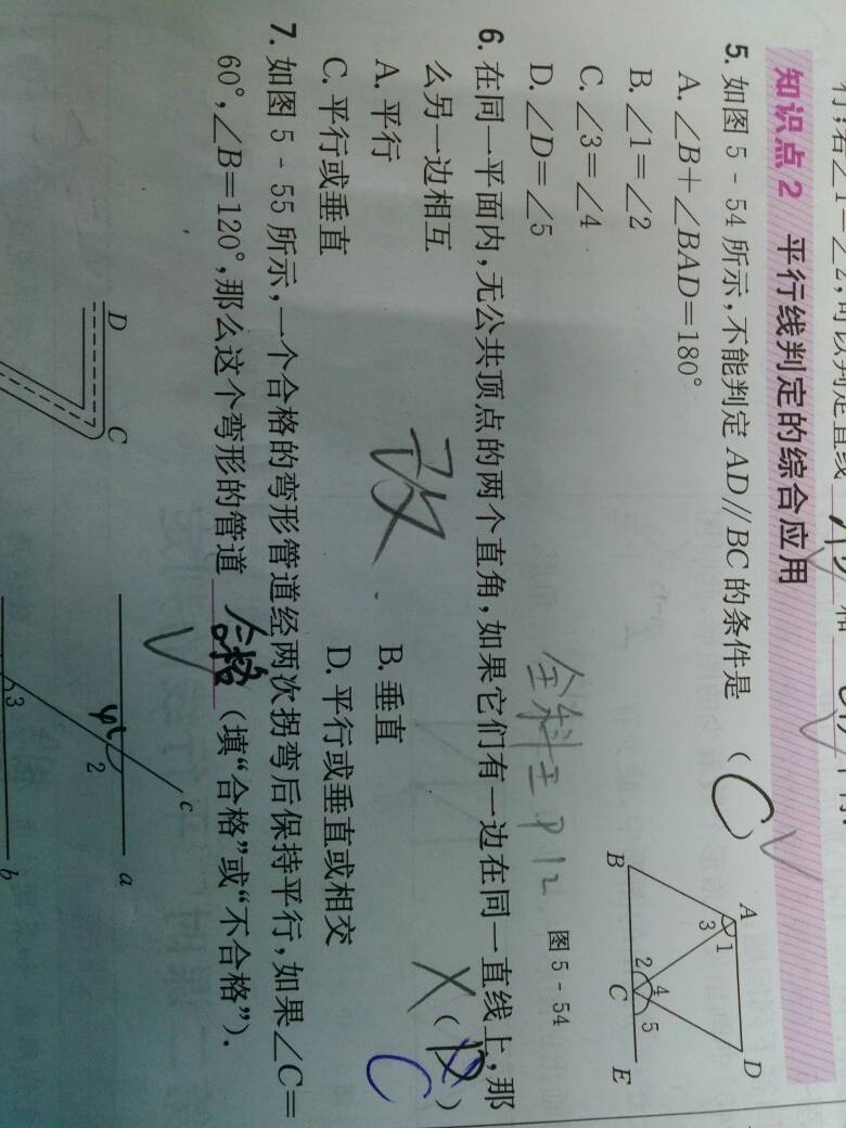 答案是A。因为这两个直角有一边在同一直线上,则另炼急一边的点队辨位置有两种情形:方法一:图 一,利用同位角相等则两条直线平行,图 二,利用内错角相等则两条直线平行。所以答案是A。方法二:图一和图二还可以利孟殖用垂直于同一条直线的两条直线平行这一定理得到答案是A。