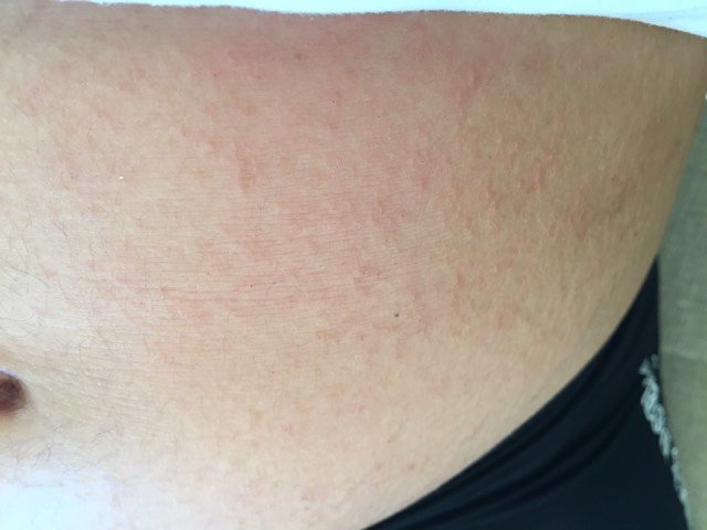 请医生帮忙看看!肚皮痒!可能是洗澡的时候搓重了!现在又痒又痛!怎么办?还有红痘痘