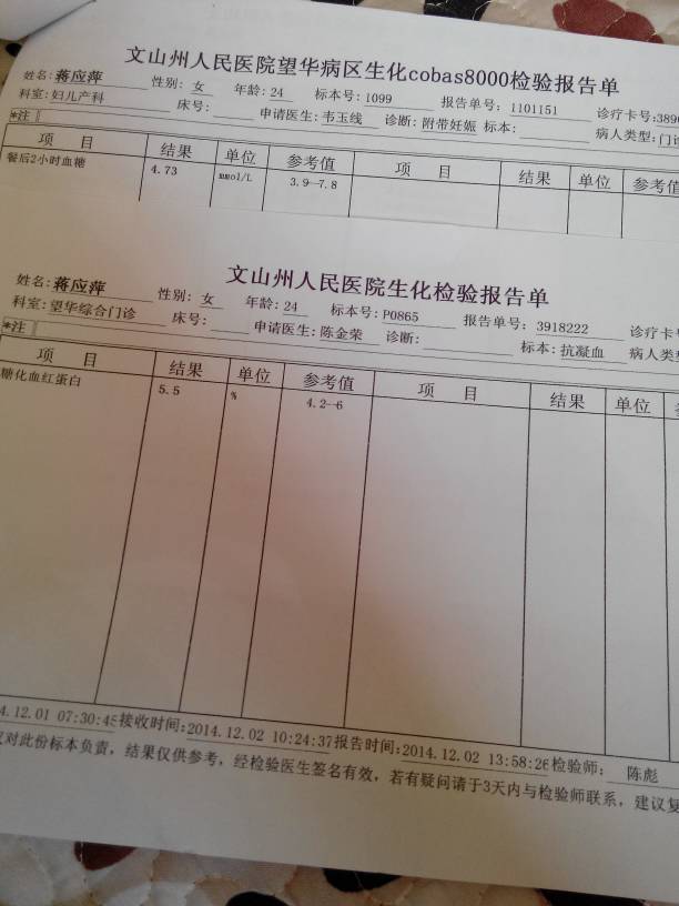 麻烦懂的帮忙看一下,血糖正常吗 麻烦懂的帮忙看一下,血糖正常吗 点击展开 ~ 浮萍 ~ 2014-12-03 11:14 为您推荐: 其他回答 正常。。。 静柔 2014-12-03 13:11 结合你检查的血糖的数值是 正常的不用担心的,是不需要治疗的。 要均衡营养多吃新鲜蔬菜水果 。 青山大夫1 2014-12-03 12:28 客气啦!!! 幻宇80s 2014-12-03 12:00 正常呀!!! 幻宇80s 2014-12-03 11:56 祝孕妈好运 雨思静 2014-12-03 11:38 加载更多 相关问题 麻烦各位帮我看看正常不?血糖结果谢谢! 麻烦懂的人帮忙看看、我这正常吗? 怀孕23周的血检报告,麻烦懂的朋友帮忙看一下
