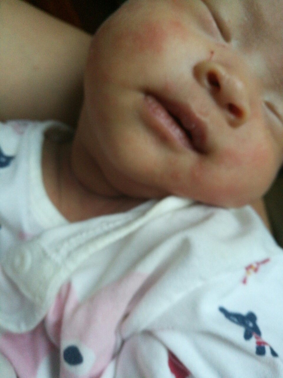宝宝出生23天,脸上跟脖子跟长了一大片,像粉刺一样的像过敏一样,有图片,请帮我看看看谢谢