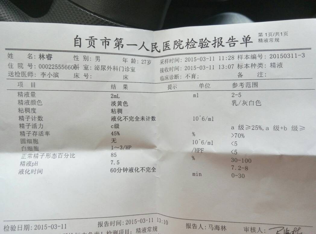请大家帮我看下这张检测报告,还有可能怀孕吗?能医不? 点击展开 匿名用户 2015-03-11 15:00 为您推荐: 其他回答 你好,从检查结果看没有什么大的问题的,不过精液是有点问题的,需要用点药物来改善的,液化时间有点长,活力的话也有点低,但是活力还是可以正常的怀孕的,就是液化的情况是需要改善一下的。 Q我2529381180 2015-03-11 15:35 相关问题 请问大医?我之前准备做试管婴儿检测报告还在这里还有没有用啊? 我小孩检查性激素六项检测报告每一项都不达标、我怎么办,能有医吗?没有生育能力对我全家是很大的打击、 医们帮我看下这张四维检查表