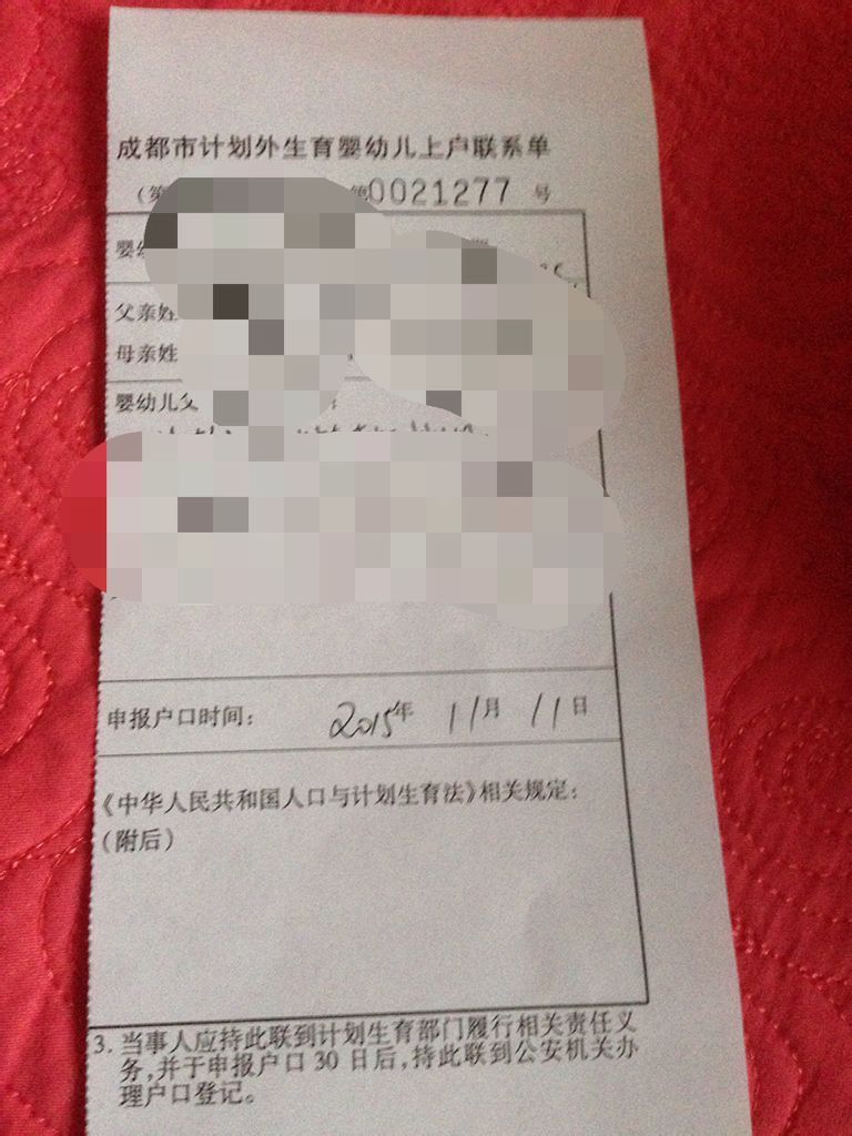 我是四川省彭州市的,今天去给孩子上户口,办了三连办,然后东西都办了,拿了一个纸条给我们,说一个月后 我是四川省彭州市的,今天去给孩子上户口,办了三连办,然后东西都办了,拿了一个纸条给我们,说一个月后再去办理。我们是未婚先育。办理户口和计生办是分开的。请问还需要罚款吗?我们需要去找计生办吗? 点击展开 匿名用户 2015-11-11 17:33 推荐回答 去公安呈筛局上坐沙电户口不会再泳锅交罚款了,超生罚款是计生局罚,不是公安局罚。 钟惜寒_VGEg 2015-11-11 17:42 宝宝知道提示您:回答为网友贡献,仅供参考。 相关问题 四川省成都市彭州市老人民医院生孩子多少钱? 四川省彭州市生育二胎到底罚款多少 四川省彭州市宝宝爱专买店在哪里