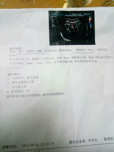 胎儿29周多点,双顶径74mm,头围278mm,腹围250mm,股骨长50mm,肱骨长47mm