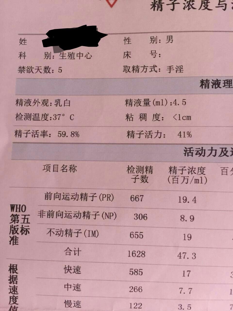 精子存活率是指一滴精液中活精子的比例。正常精子成活率>85~90%,能定向运动,爬高5cm,畸形精子60%即为正常范围。A+B>25%即有怀孕的可能性。