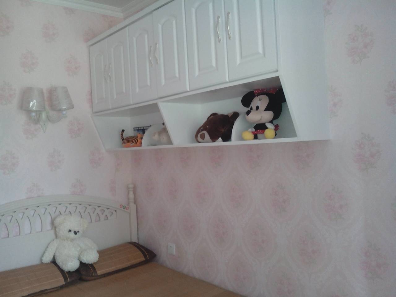 大家帮忙看看,这个是我家小女孩的房间,刚装修完,床上方有这么个吊柜,我怎么躺在下面感觉下挺不安全的