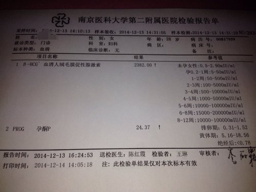 上月11号来的大姨妈,本月还没有来,今天去拿血检报告单,可是医生休息,完全看不懂,有懂的亲吗?谢谢 点击展开 匿名用户 2014-12-14 16:07 为您推荐: 其他回答 您好,根据您的检查结果,您有可能是怀孕了。建议您定期进行产检,观察胎儿的发育情况。 闯闯201312 2014-12-14 19:09 相关问题 医生,今天拿抽血的报告单,检查是否怀孕了、上次月经是八月二号、我这检查结果正常吗? 我家宝宝今天去做血检,我看不懂,医生讲的也很模糊,请懂的帮我看看 回答的详细点 谢谢 有医生吗?我用试纸试了有两条杠,一深一浅是怀孕不?可是我今天上厕所有红的是怎么回事?我是上月十二号