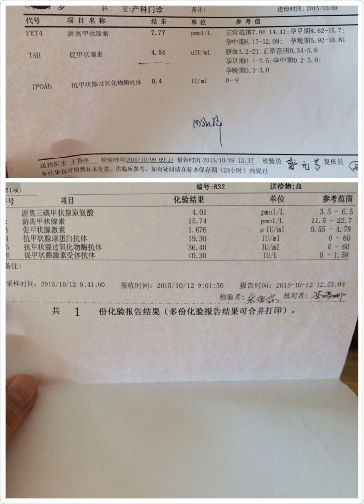 我现在怀孕26周,产检在妇幼查促甲状腺4.9,高出正常值大夫建议去综合医院看内科,我到了省立医院 我现在怀孕26周,产检在妇幼查促甲状腺4.9,高出正常值大夫建议去综合医院看内科,我到了省立医院,查的结果在正常范围内,我要以哪个结果为准呢……好是郁闷,担心都会宝宝不好,希望大家能给个意见 点击展开 夕木木 2015-10-12 18:03 为您推荐: 其他回答 没事的………… 小策小宝 2015-10-12 20:44 没事的!,。 yy22 2015-10-12 20:28 正常的别担心 小丸子! 2015-10-12 20:14 问问问医生 你还好吧 2015-10-12 19:55 沒事,,,, 阳台种菜 2015-10-12 19:31 加载更多 相关问题 有去综合医院看甲状腺功能的吗?一妇婴单子瑞金不认,又重新抽血 甲状腺素189 9 大夫说一种可能是怀孕带的!一种就是甲亢了!要是有甲亢早就发现了! 低热消瘦甲状腺(T3T4正常TSH100多大夫说没什么事)糖尿病…