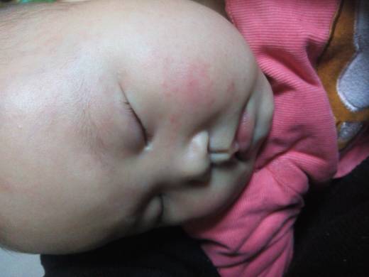 宝宝六个半月,昨晚上发现面部耳后头部前胸后背有红点点,很多,今天比昨晚严重多了!肩部挠了几下红了一