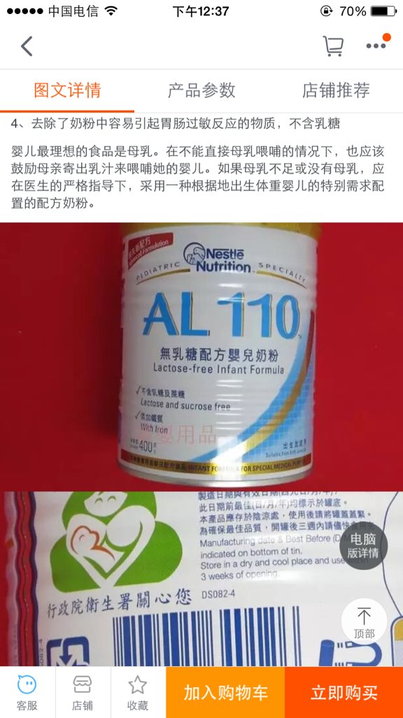 乳糖不耐受 喝雀巢奶粉 混合雀巢米粉 现在想换成亨氏米粉 里面含低聚半乳糖和果糖 可以吃吗 点击展开 匿名用户 2015-06-28 12:38 为您推荐: 其他回答 不能,吃了照样产生乳糖不耐症 水清妙_SJ8s 2015-06-28 14:01 相关问题 宝宝乳糖不耐受吃了两罐雀巢防腹泻奶粉好了还,今天去买了雅士利的低聚半乳糖的奶粉!也不知道会不会拉肚 寻求奶粉,米粉,果泥,合肥供货商 通货 控货的都可以 亨氏 雀巢 这些 宝宝最近过敏我停了奶粉 目前每天就是婆婆熬烂粑饭,吃点亨氏米粉,我母乳不多,給吃点香蕉!昨天到现在