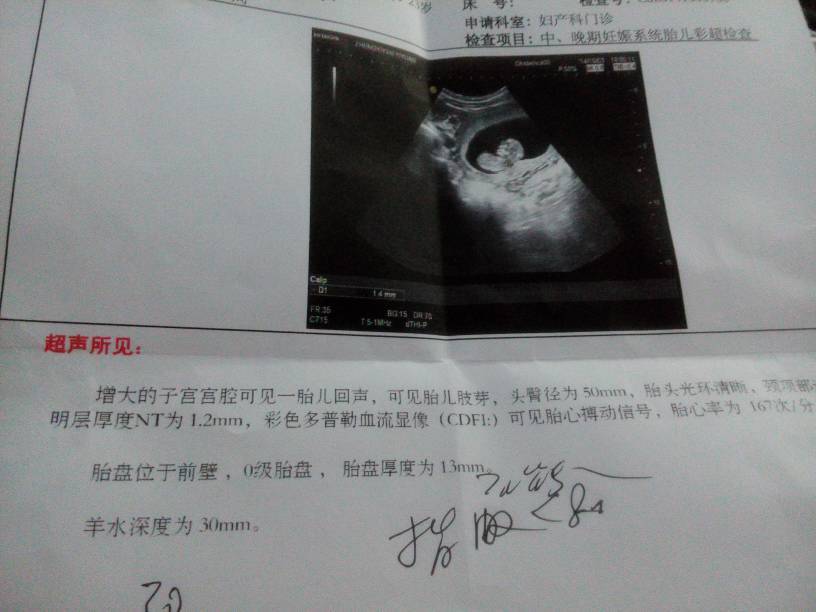 今天的检查结果,医生说的不太懂,懂得帮看看,给说说呗 今天的检查结果,医生说的不太懂,懂得帮看看,给说说呗 点击展开 二胎牛牛妈 2014-10-03 17:41 为您推荐: 其他回答 你好,根据你的检查结果,B超如孕3个月大小,各项数值与怀孕月份符合。 淑华76 2014-10-06 21:54 宝宝很好。。。 ℡﹏安郁染☆づ 2014-10-03 21:49 那就没事,有可能是女宝哦 ℡﹏安郁染☆づ 2014-10-03 21:49 医生有说心跳快吗 ℡﹏安郁染☆づ 2014-10-03 19:30 心跳快,正常120-160 心锁 2014-10-03 18:17 加载更多 相关问题 有人懂这个吗?医生说不正常…懂得亲赶快告诉我 为什么比超显示只有33周啊,实际有35周了,今天走的急没请教医生,有懂的帮我看看,谢谢 怀孕31周左右今天做了B超,检查结果那医生说的不是普通话,所以不懂,在这请问一下:BPD:77mm