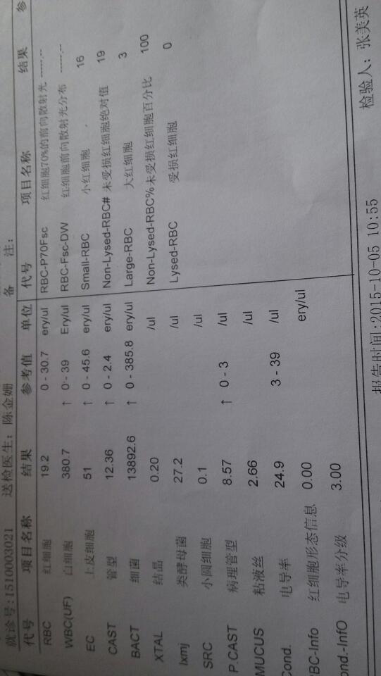 怀孕13周尿检结果,麻烦哪位妇科医生帮忙看看,细菌有一万多 怀孕13周尿检结果,麻烦哪位妇科医生帮忙看看,细菌有一万多 点击展开 淡然_xDfS 2015-10-05 11:22 为您推荐: 其他回答 多喝水增多排尿次数,冲洗尿道可以减少菌群的 love's grave 2015-10-05 22:30 看不清,,, 亲爱鍀,相依为命 2015-10-05 19:09 不清楚。。 谷扬雅然 2015-10-05 19:09 估计有炎症 淇淇乐乐 2015-10-05 12:02 问下医生吧 拐角迷失爱 2015-10-05 11:59 加载更多 相关问题 怀孕25周 尿检细菌六百七十多 偏高 对宝宝有什么影响吗 我不知道怀孕几周了,最后一次例假完是5 4 我在6 18左右去做了尿检和b超,显示没怀孕!但是在6 怀孕6周4天了,为什么6月3号去医院检查做b超没有看到孕囊,尿检的是阳性,这几天还有少量的血是什么