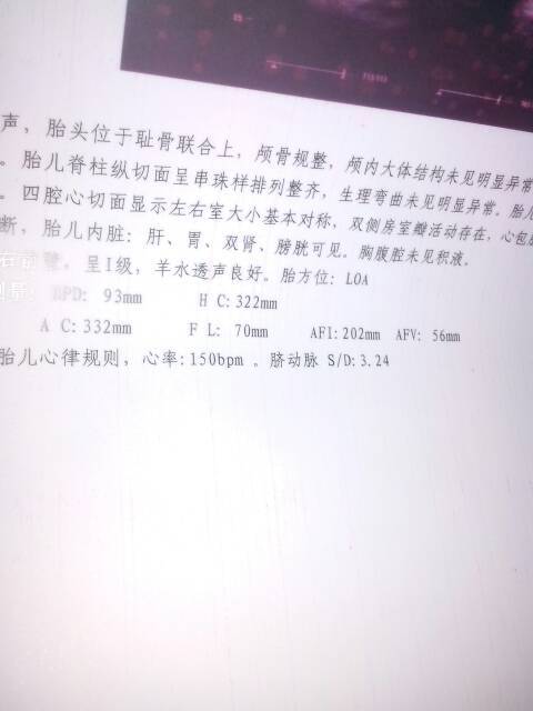 孕38+4周了,帮忙算下宝宝有多重 孕38+4周了,帮忙算下宝宝有多重 点击展开 佳佳宝贝@ 2014-12-10 06:48 为您推荐: 其他回答 宝妈,你现在的数据双頂径和股骨长都和我35周+6的一样 喜洋洋芊 2014-12-10 10:24 六斤左右哦 関亍硪 2014-12-10 08:59 我检查都显示宝宝重量 【坏蛋~Baby 2014-12-10 08:09 6斤多。。 专属依娜 2014-12-10 07:39 祝宝妈好孕 他入她心 2014-12-10 07:38 加载更多 相关问题 孕38周,胎儿一般有多重了? 会算的宝妈帮我看下宝宝现在有多重?谢谢! 各位帮帮忙:孕37周,双顶径91,股骨径72,腹围315,哪位医生会算胎儿体重?帮忙算下现在有多重