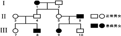 (1)调查人类遗传病时,最好选择发病率较高的单基因遗传病.通过遗传咨询和产前诊断等手段,可以对遗传病进行监测和预防. (2)图中Ⅱ3和Ⅱ4均正常,生出患病的Ⅲ8,由此可判断该病是隐性遗传病. (3)由以上分析可知,该病为常染色体隐性遗传病,因此Ⅱ3和Ⅱ4的基因型均为Aa,如果Ⅱ3再生一对同卵双胞胎,她们是女孩得概率为12,患有半乳糖血症的概率是14,因此这对沃搂神同卵双胞胎是女孩且患有半乳糖血症的概率是12×14=18. (4)Ⅲ7还是红绿色盲基因携带者,则其基因型及概率为13AAXHXh、23AaXHXh和,Ⅲ10的基因型是AaXHY,他们婚配,生下既患半乳糖满劣血症又患红绿色盲孩子的概率是23×14×14=124. (5)Ⅲ7是21三体综合征患者,即体内有3条21号染色体,则其可能是由染色体组成为22+X的卵细胞和23+X的精子受精发育而来的,这属于染色体变异.故答案为:(1)单基炼柴因;;;;;;;遗传咨询(2)Ⅱ3和Ⅱ4均正常,但生出患病的Ⅲ8(或Ⅲ8患病,但其双亲正常)(3)Aa;;;;;18;;;;;;;(4)124;;;;;;;;;;;(5)23+X;;;;;;;数目