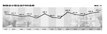 认真观察分析下图,根据我国制造业小型企业PMI走势,用简洁的语言概括我国2012年7月——2013年7月经济走