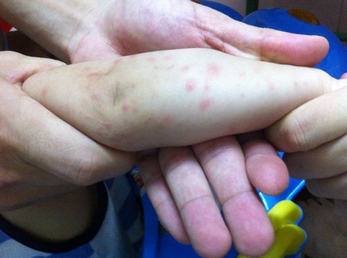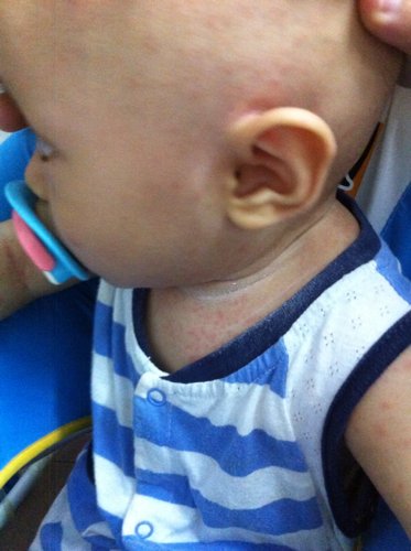 请问专家我宝宝手臂和颈部长的这个红色的点点包包是什么?已经一个多礼拜了总是这消了另外一个又出来擦药