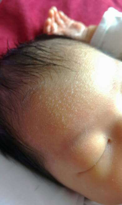 你好,目前的情况考虑是湿疹,是婴儿时期常见的皮肤疾病,建议保持局部清洁,使用硼酸溶液。