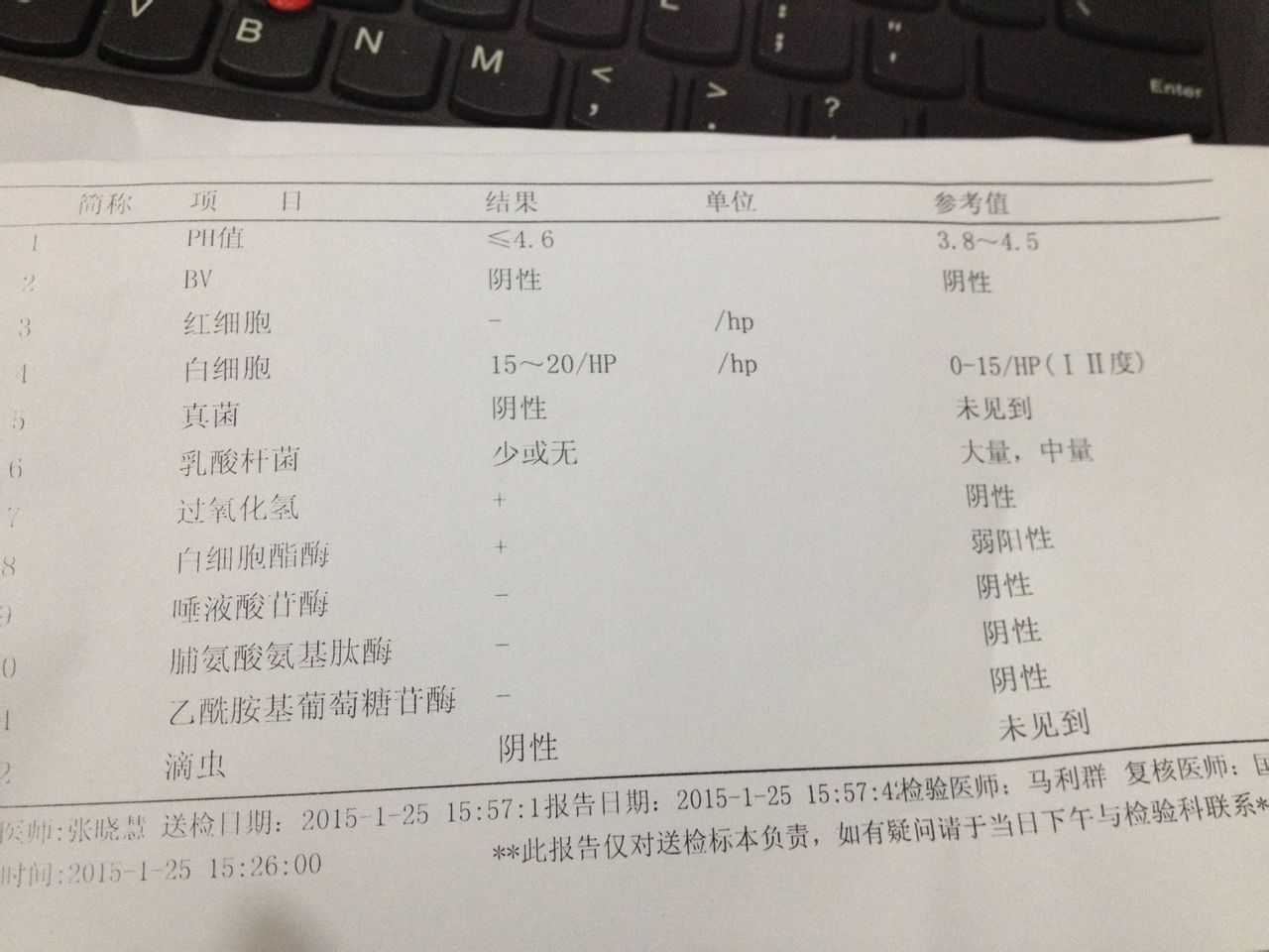 请问怎么看白带常规检查结果?这样算是有炎症吗??适不适合怀孕啊??? 点击展开 匿名用户 2015-01-25 21:28 为您推荐: 其他回答 根据你现在检查的结果,是属于正常的,是可以正常的怀孕,没有影响。 幸福的音符乐园 2015-01-26 06:39 相关问题 擦在纸巾上,发现白带有点微黄,没有什么不适的症状,不知道有什么妇科炎症吗,不想去检查… 急!!请帮忙看看白带带规检查结果!有的医生说没事,有的医生说有炎症!请高手帮忙看看!! 怀孕初期有很长的的一段时间都流的都是深褐色白带,比较干 不知道怀孕一直以为是炎症,买了洗液洗了下