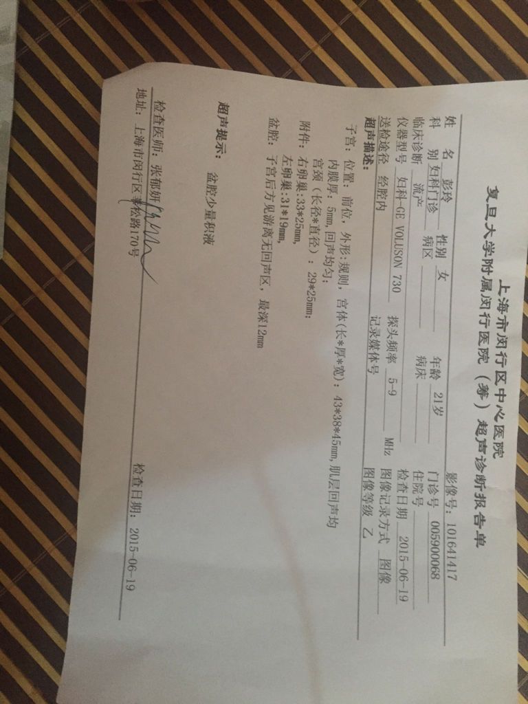 胎停育引产清宫第19天复查,这样子干净了吗 点击展开 匿名用户 2015-06-19 14:33 为您推荐: 其他回答 你好,b超显示宫腔内没有残留物,盆腔内有少量的积液,可以服用宫炎平药物治疗。 cn#BaLpBVLukV 2015-06-19 14:43 相关问题 胎停育75天药流清宫后,多久去复查? 12月19号做的引产清宫手术 1月30号和2月9号同房,到现在月经没来会不会怀孕啊 2012年12月19号做的引产清宫后到现在月经没来,正常么
