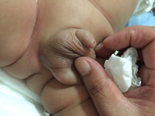 宝宝四个月,换尿布时发现蛋蛋下有条裂痕,平常都穿尿不湿,不可能是外力刮伤,怎么会有这种裂痕?咋办?
