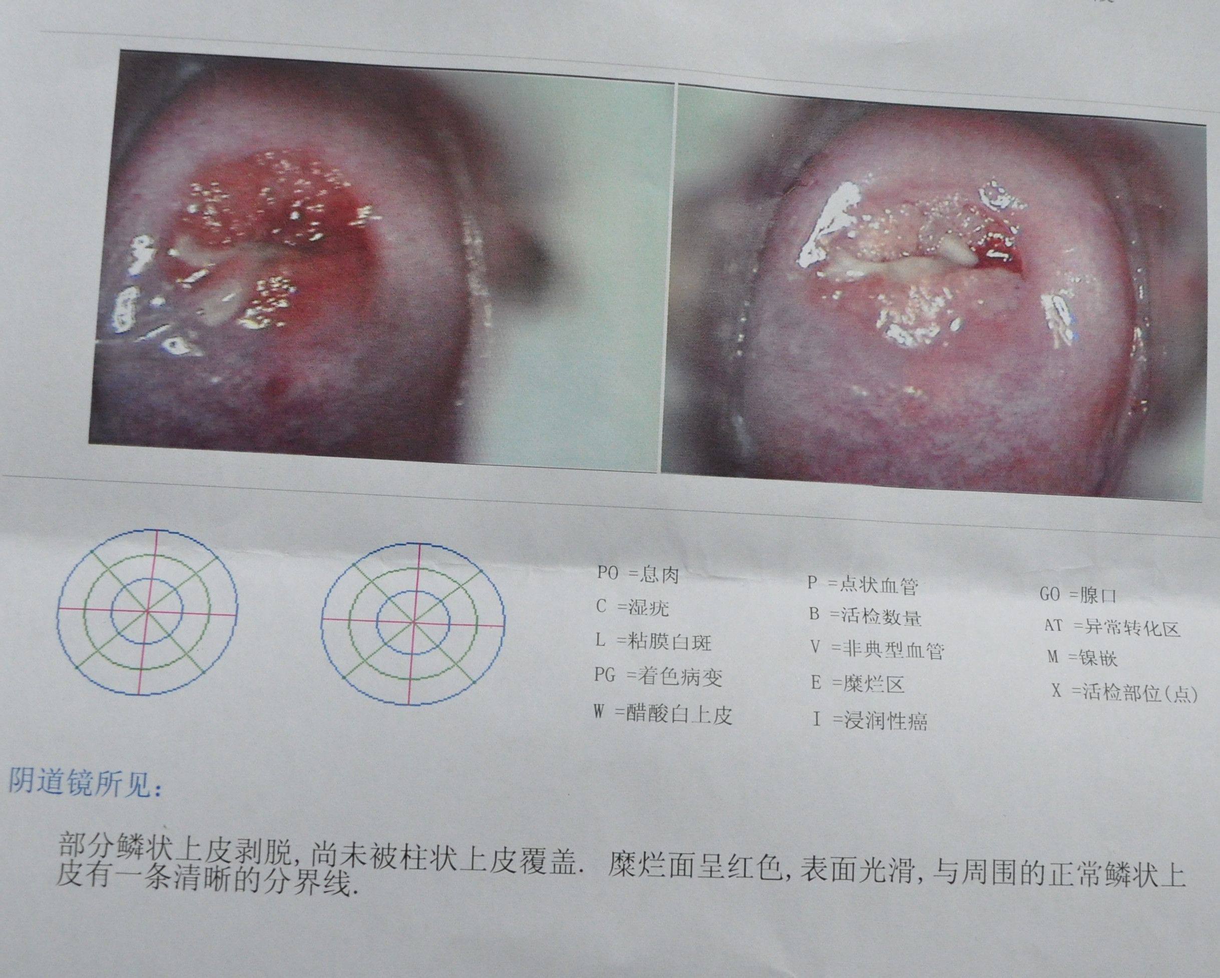 这个宫颈糜烂阴道镜检查结果说明了什么,该怎么用药?? 点击展开 匿名用户 2014-01-23 16:17 为您推荐: 其他回答 病情分析: 你好,根据你的检查结果看属于中轻度的宫颈糜烂。 指导意见: 建议你可以先进行药物方法治疗,如灭滴灵,磺胺类药,呋喃西林,消糜拴进行上药治疗,治疗期间禁止性生活,注意休息。 匿名用户 2014-01-23 16:30 相关问题 关于阴道镜检查结果的疑问(是否有宫颈糜烂?) 阴道镜检查重度宫颈糜烂,涂醋酸后见柱状上皮水肿,薄的醋酸白皮上色,完整的鳞柱交界可见,涂碘偶转化区 阴道镜检查重度宫颈糜烂,涂醋酸后见柱状上皮水肿,薄的醋酸白皮上色,完整的鳞柱交界可见,涂碘偶转化区