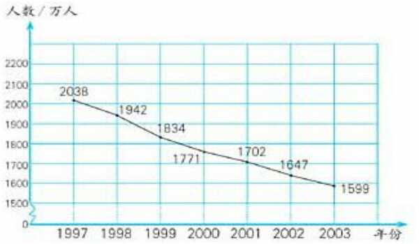 计划生育是我国的一项基本国策.1997~2003年全国每年出生人口数如下图:(1)2000年出生-人.