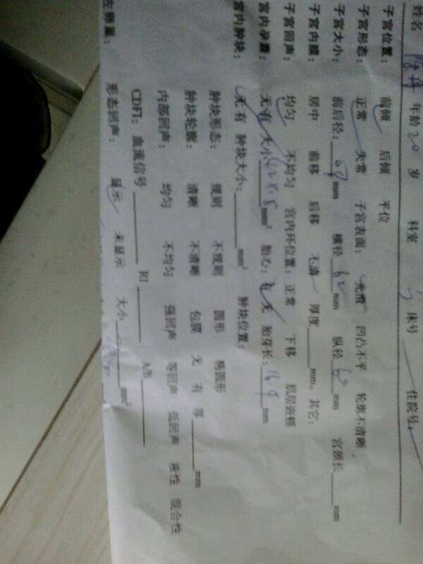 这样吧,您把单子上的:宫内孕囊那一行的内容给写上吧,看那个。谢谢!