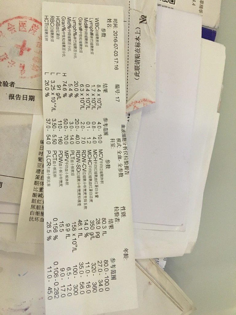 有会看验血报告单的吗?请专家看看我真的贫血很严重吗? 有会看验血报告单的吗?请专家看看我真的贫血很严重吗? 点击展开 宜恋 2016-07-05 19:51 为您推荐: 其他回答 是的,当然是去医院查找原因。 cn#BapVaBuGaQ 2016-07-06 05:24 目前不考虑输血。最好查找贫血的原因。 cn#BapVaBuGaQ 2016-07-05 22:16 问问医生比较好 陈俊希 2016-07-05 21:00 祝健康成长 宸欣宝贝 2016-07-05 20:51 问问医生吧 冯家宝儿 2016-07-05 20:45 加载更多 相关问题 这个验血报告单可以看出来有没有贫血吗? 请专家看看我的唐氏筛查报告单,急!!! 请教一下专家看看我老婆怀孕六个多月的三维彩超报告单?