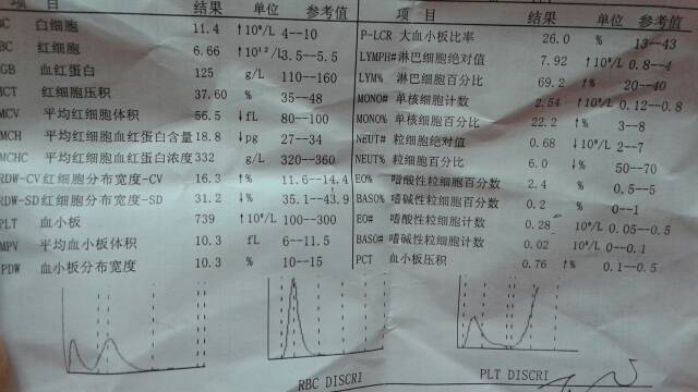 求好心人帮助!痛在儿身疼在娘心,那种苦那种疼做为妈妈还是得坚强。请医生帮忙看看,这是我女儿今天化验的血球计数,她的病情如何?女儿六个月多,从五号开始发热,发热好了流眼屎说是结膜炎,结膜炎好了又流鼻涕咳嗽后又发热!我女儿到底怎么回事?该怎么办?