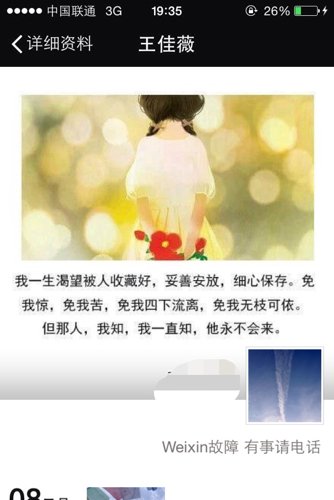 认识3个多月后 一直也有来往我也一直在追求喜欢的女孩突然把朋友圈图片换成这个啦 我该用个什么图 认识3个多月后 一直也有来往 我也一直在追求 喜欢的女孩突然把朋友圈图片换成这个啦 我该用个什么图片应对一下? 点击展开 匿名用户 2015-04-13 19:41 推荐回答 换上一副送花的图! 苦素欣_vUMn 2015-04-13 19:50 宝宝知道提示您:回答为网友贡献,仅供参考。 相关问题 一个女孩子在朋友圈发这个什么意思,图为一个新楼盘的图片,什么叫盼望那一天 节日愉快🎉 我追求的女孩向我发这个图片,图中文字什么意思暗示什么? 怎么追求性格独立的女孩,不喜欢粘人的性格