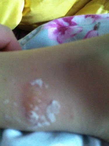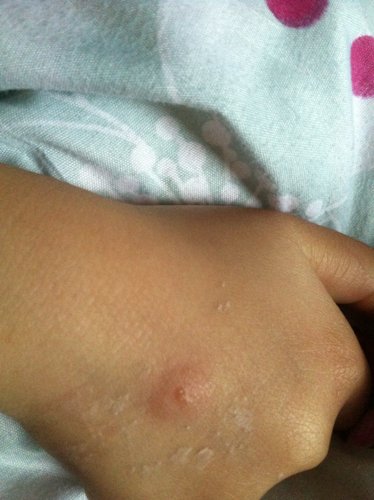 你好!你 你好!我的小孩每次在外地回到老家 身上就长些豆豆或者水泡 去医院看也看不好!一回我