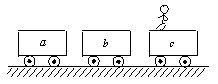 如图所示,三辆相同的平板小车 a、b、c 成一直线排列,静止在光滑水平地面上,c 车上一个小孩跳到 b