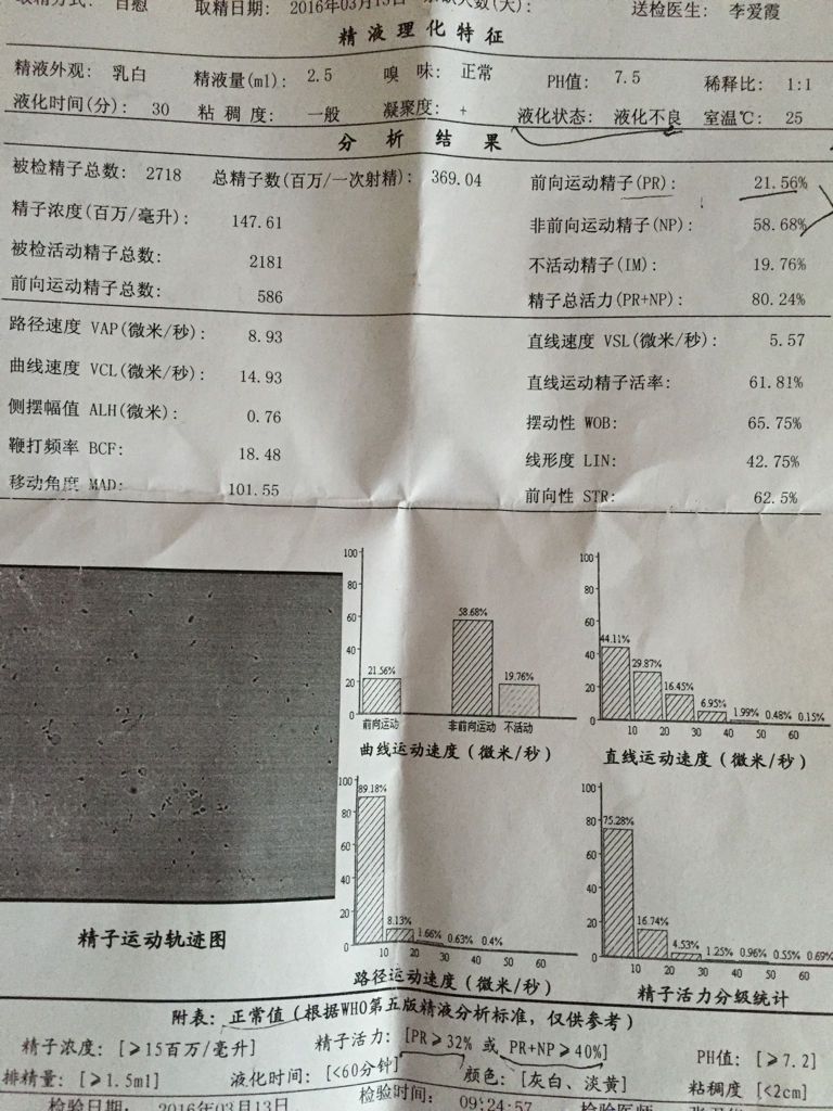 前几天去检测精液,医生说液化不良,向前运动精子也不够,能怀孕吗?该怎么治疗,望专业人士解答,感谢! 点击展开 匿名用户 2016-05-09 06:37 满意回答 你好,根据你所描述的金绣峡情裁坐况来看,建议先备孕北贸,暂时不需要治疗,如果备孕失败再考虑治疗。 manbuhaitan11 2016-05-09 06:42 宝宝知道提示您:回答为网友贡献,仅供参考。 相关问题 老公的精液不液化,精子数量不多,并且大多是头小尾巴长,A级的很少 请问医生,这有办法治疗吗? 安全套破了个小洞,精子还没液化就拿出来了,看到精液还在套里,怀孕可能大么 是否得过睾丸炎症就会精液中无精子